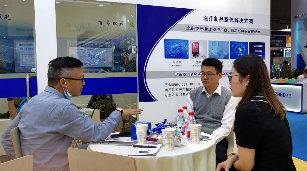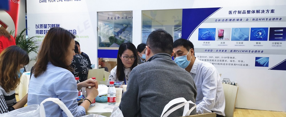 在四天的展示中,新上化公司为本次展会特别设计打造的新颖展台始终汇集着八方来客,专业的客户对我司展示的邻苯类、非邻苯类医用高分子产品及血袋用、液袋用压延膜等产品兴趣斐然,很多客户进行详细的现场咨询和洽谈,期待未来能够进行深入合作。